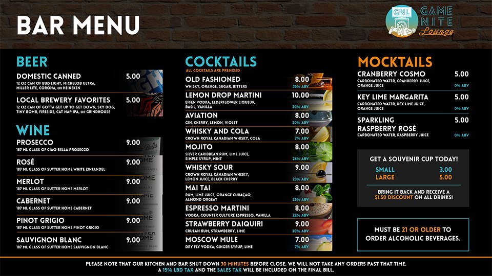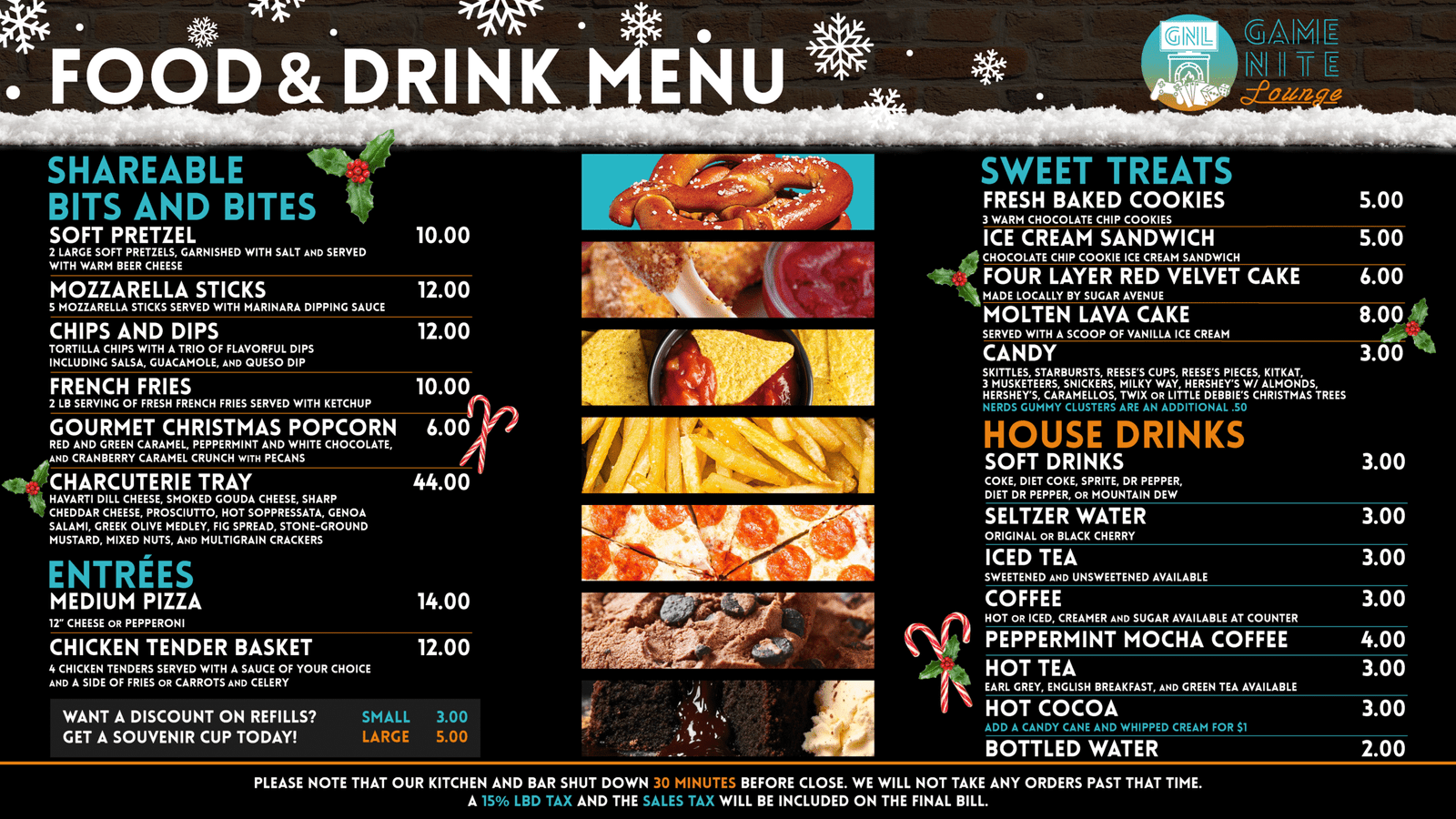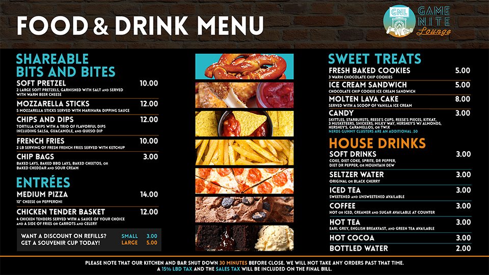 No game night would be complete without a little food and beverage, and we’ve got you covered.