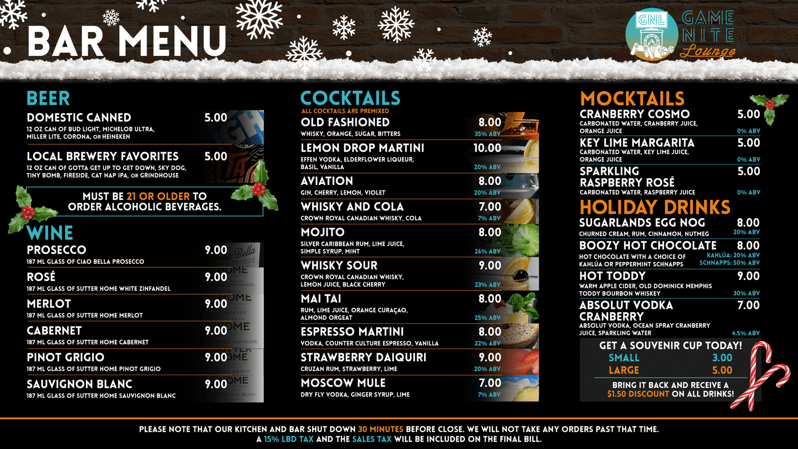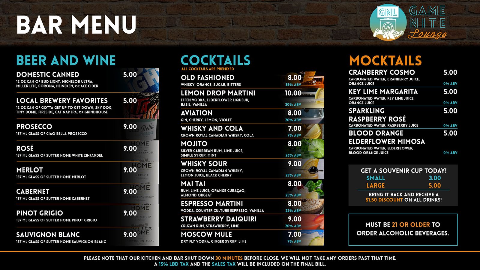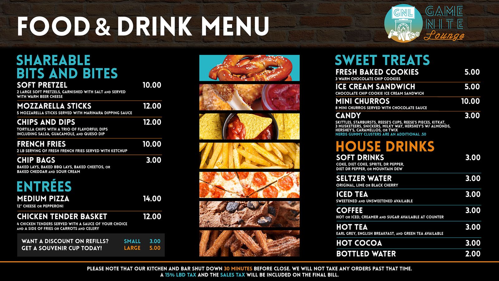 No game night would be complete without a little food and beverage, and we’ve got you covered.